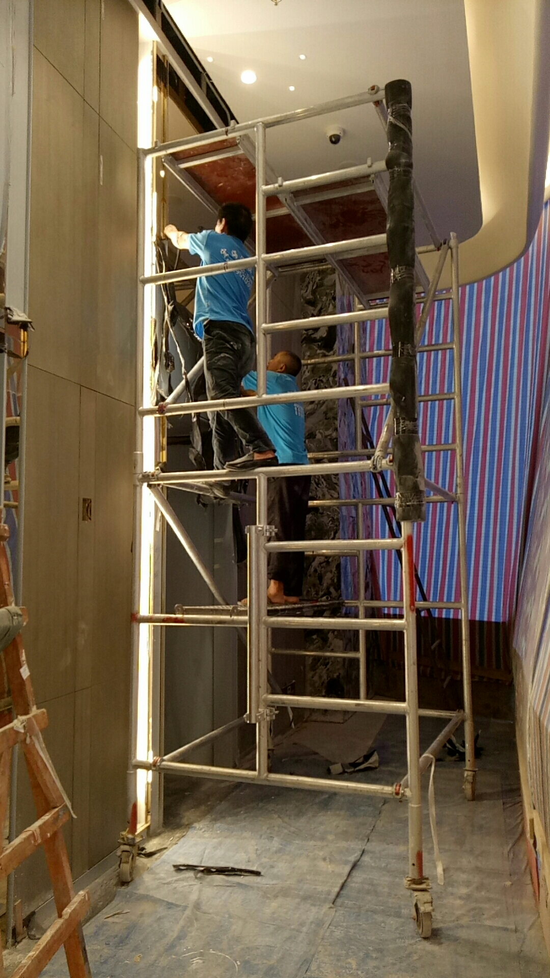 1.保潔按空間順序,由上至下,先清理頂面燈槽,可用吸塵器、毛巾等清理,此為重點(diǎn)部位,防止灰塵影響頂面燈光效果導(dǎo)致燈光不勻、遮擋發(fā)黑等,后期空調(diào)打開導(dǎo)致灰塵散落;