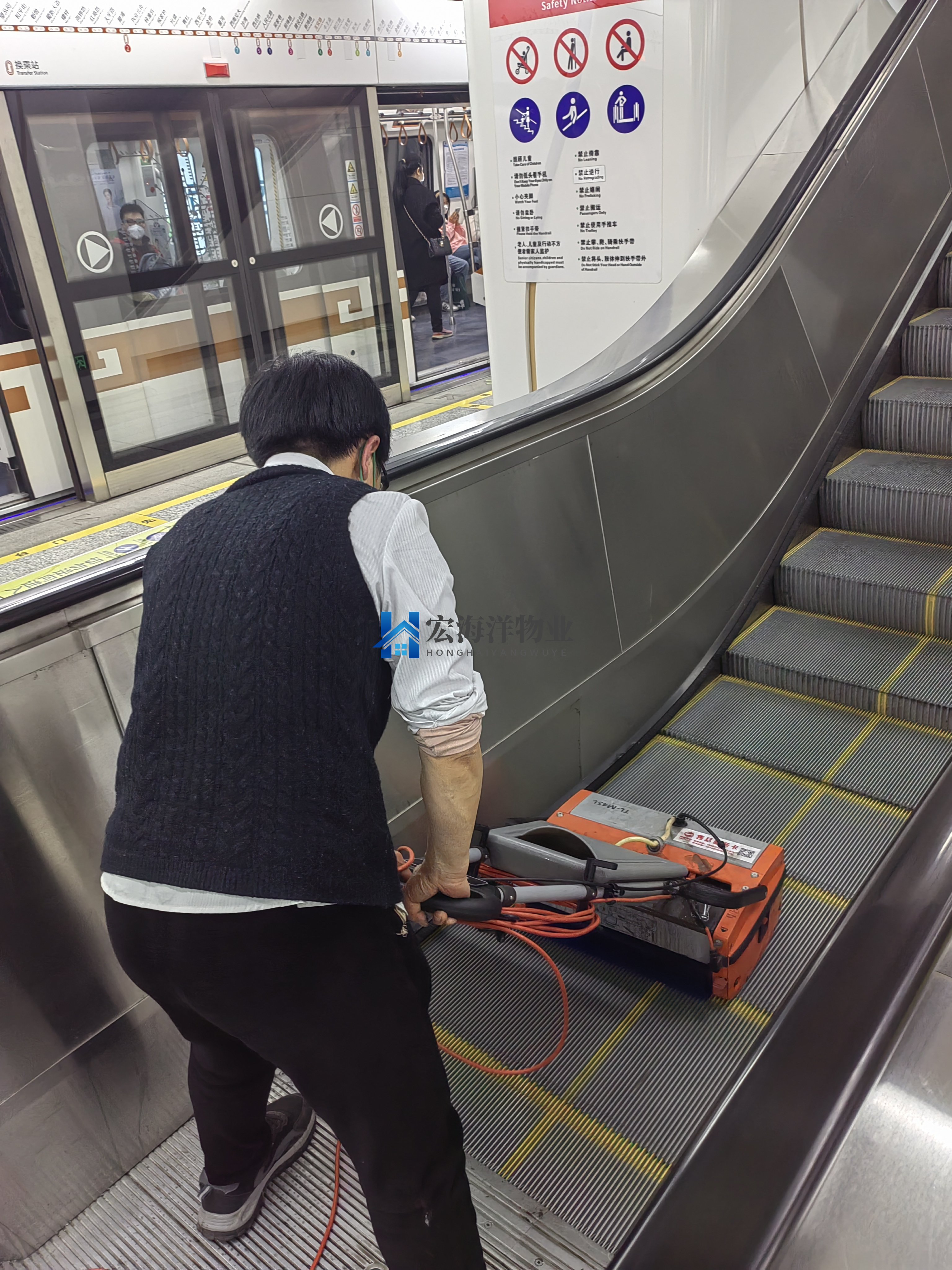 成都清洗公司用拖把把扶梯擦潔凈,若拖把拖不到,要用抹布擦潔凈。